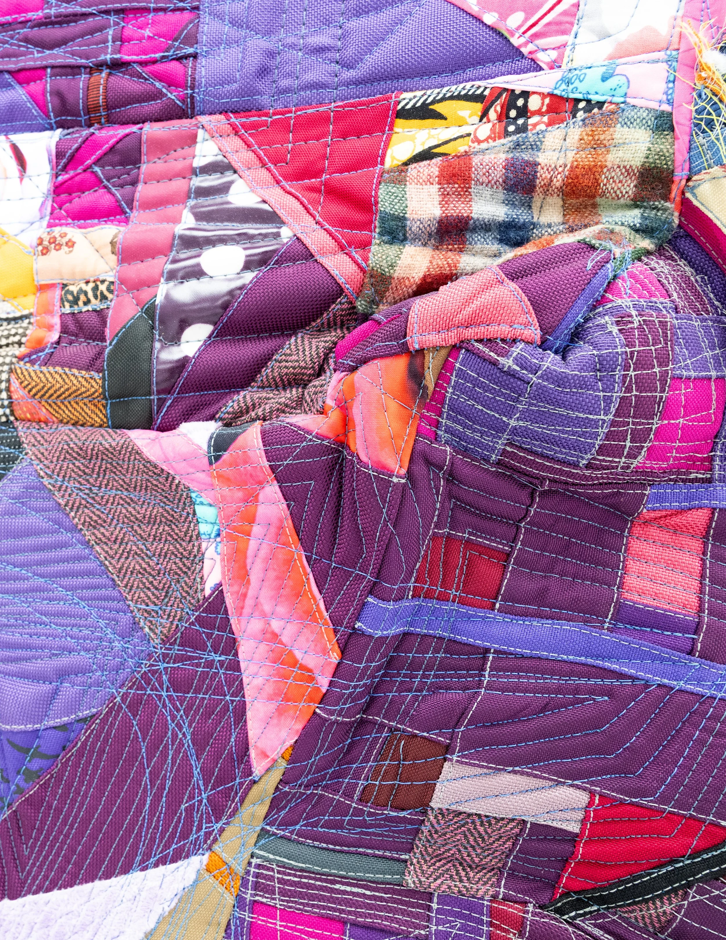 Mansur Nurullah, Friendships, 2022, Found Textiles, Polyester, Thread, Grommets, 60 x 62 in. | $16,000