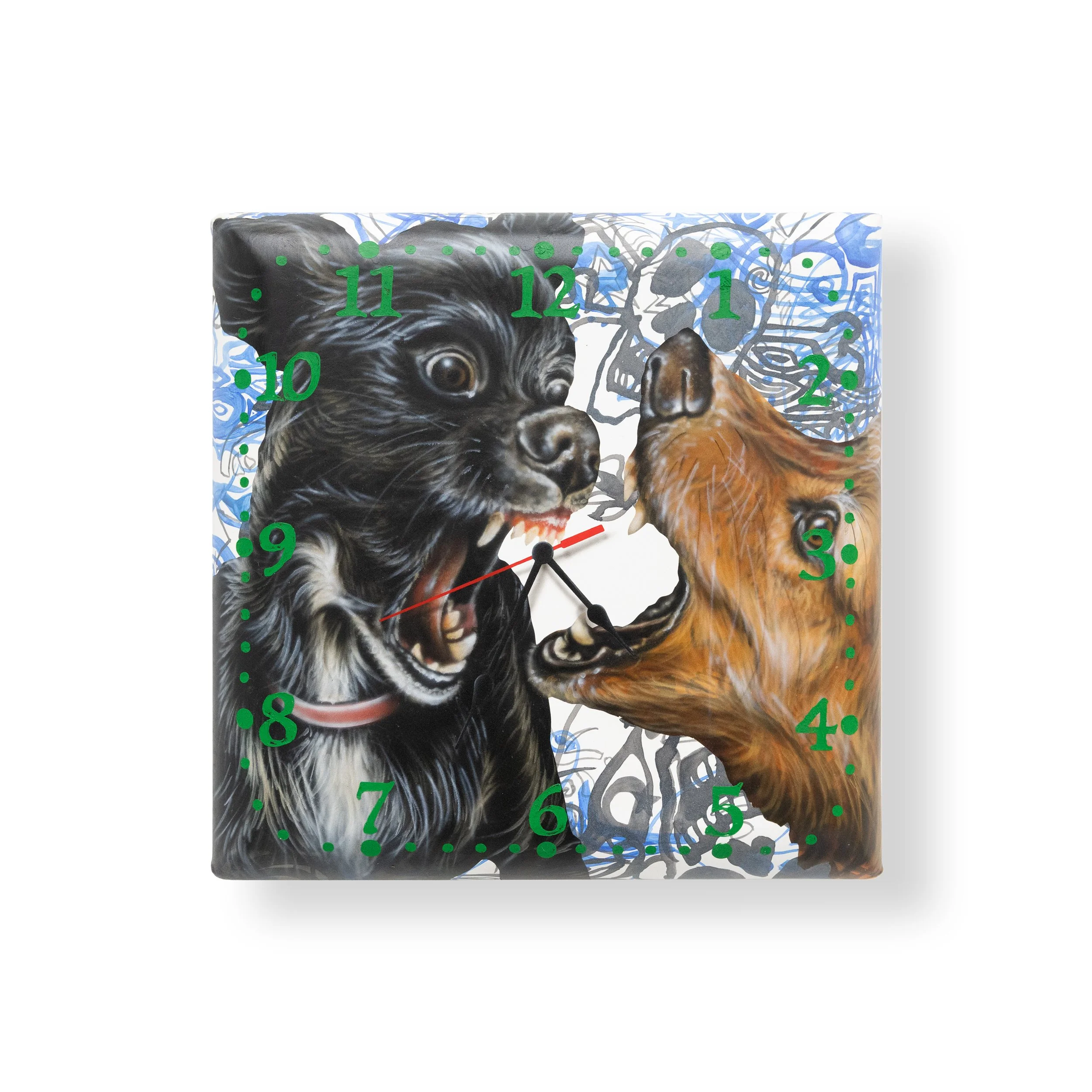 Works on canvas by Francesco Igory Deiana, Hubert Schmalix and Andrew Schoultz, all explore themes of obsession and control in their own ways. Deiana through the application of One Shot signpainting enamel creates lusciously glossy overlapping brushstrokes that compose an abstracted horned and winged figurative form sitting atop a saturated orange background–the demonic / angelic being comprised of a deft series of lines so perfectly centered that each sector is a perfect mirror of the other. Schmalix on the other hand gives way to the nuances and subtleties of a meandering and imperfect line, yielding a loose portrait in oil of two roses set against a deep lavender background. Schoultz combines some sensibilities of Schmalix and Deiana within dense compositions that are all his own. Speaking to notions of power and empire, a battalion of birds across and through a blocky fortress, buttressed by all-seeing eyes and poofs of air–all layered with the artist’s beautifully brushy linework, forging a composition that reveals a new vantage point and meaning with every viewing.