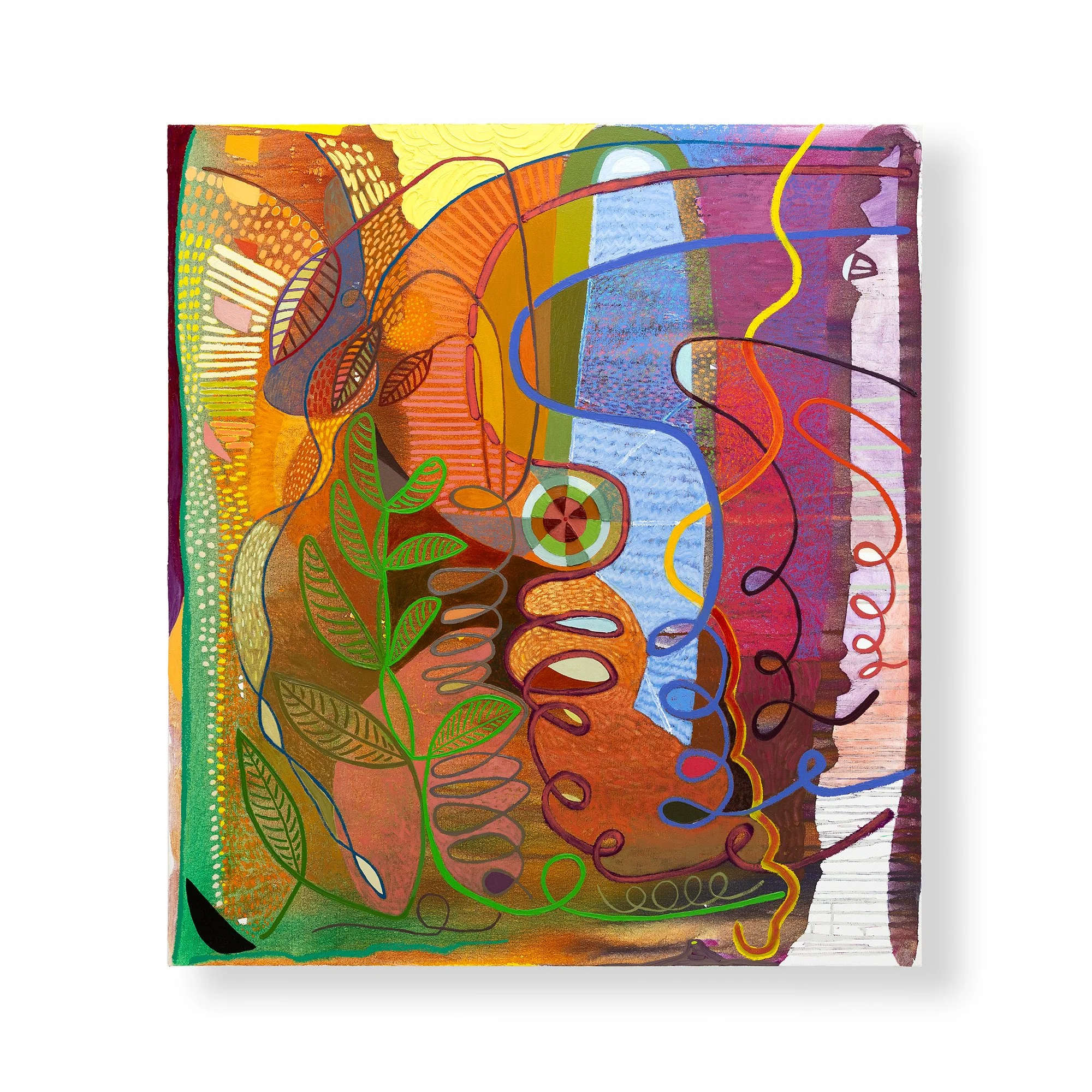 Karla Wozniak, Pinwheel and Vines, 2024, Oil and acrylic on canvas, 56 x 50 in. | $11,000