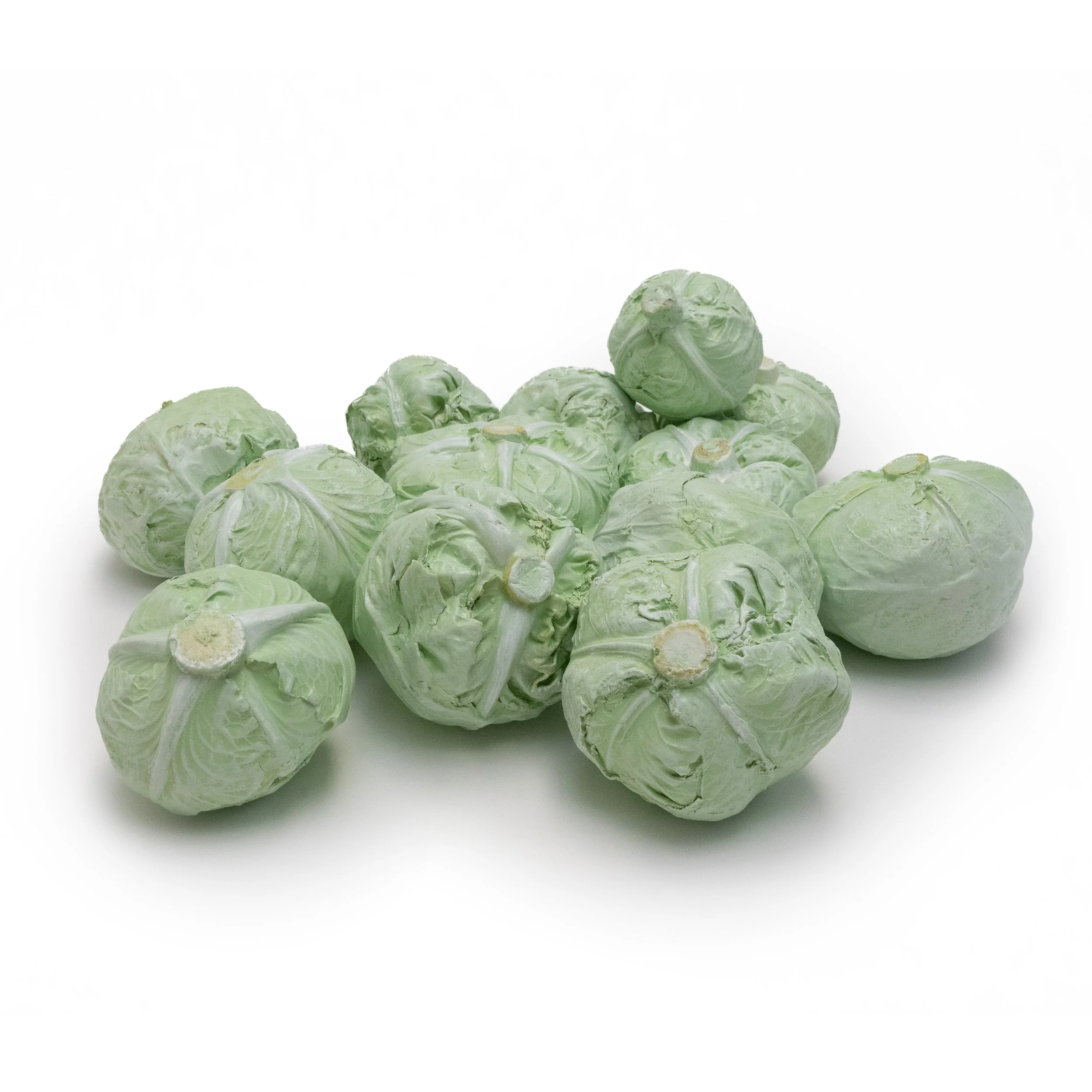 Michelle Grabner, Untitled (Cabbages), 2025, Slip-Cast Porcelain / Cast Aluminum / Cast Bronze, 5 x 5 x 4 small, 6 x 4 x 6 medium, 7 x 5 x 6 large | $